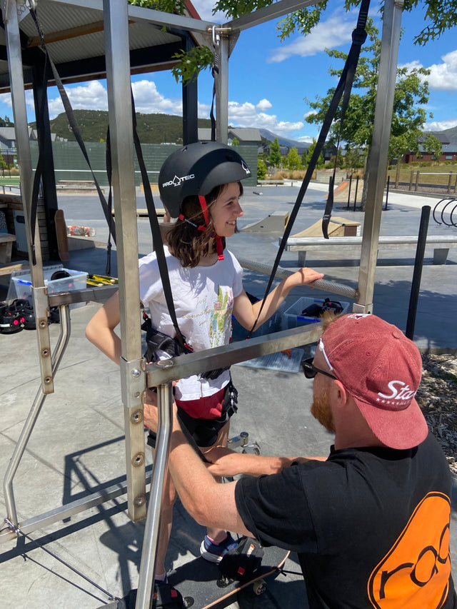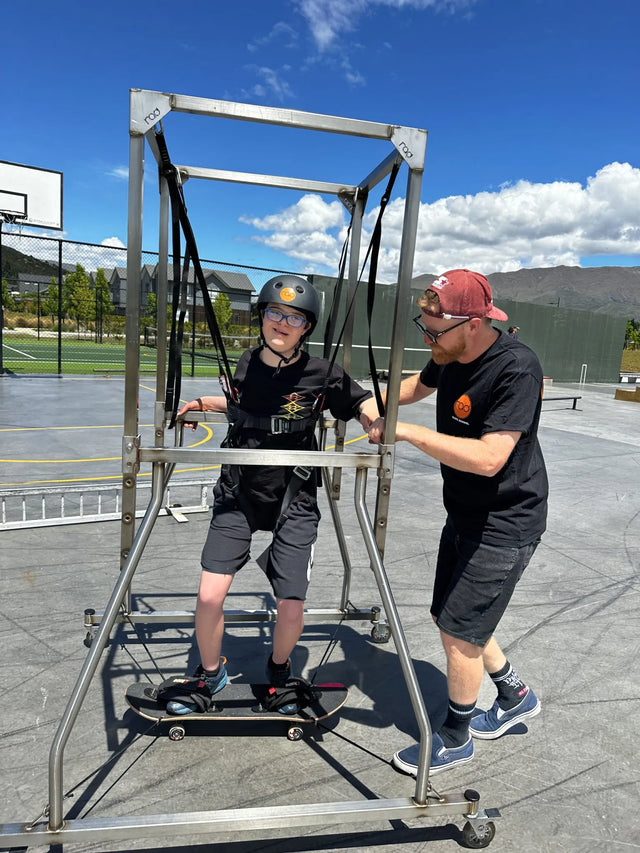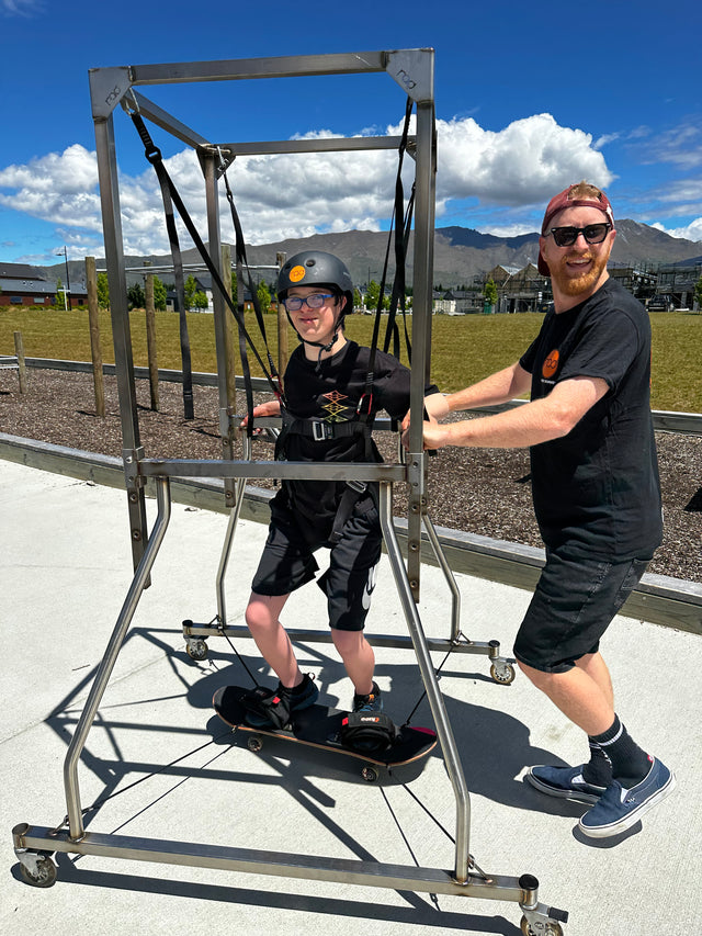 With a little bit of kiwi ingenuity we have designed and built skateboards, harnesses, frames and obstacles that allows for safe learning, regardless of your ability.